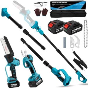4 in 1 Akku Hochentaster 6 Zoll Mini Kettensäge mit Akku und ladegerät 45 mm Elektrische Gartenschere 2x 4000mAh Elektrische Baumschere Astschere HandKettensäge Batterie säge Teleskop Astsäge