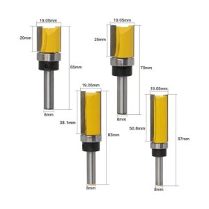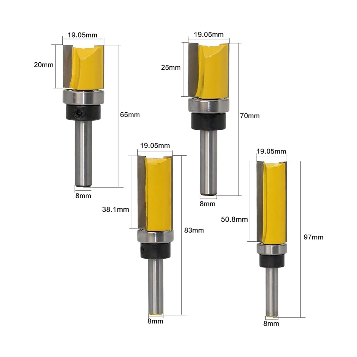 Dieses Bündigfräser-Set ist die ideale Wahl für ambitionierte Heimwerker und Tischler, die bei Präzisionsarbeiten an Holzkanten keine Kompromisse eingehen wollen. Mit vier verschiedenen Schnittlängen deckt dieses Set alle gängigen Anforderungen für bündige Arbeiten an komplexen Werkstücken ab und sorgt für saubere, gratfreie Ergebnisse.