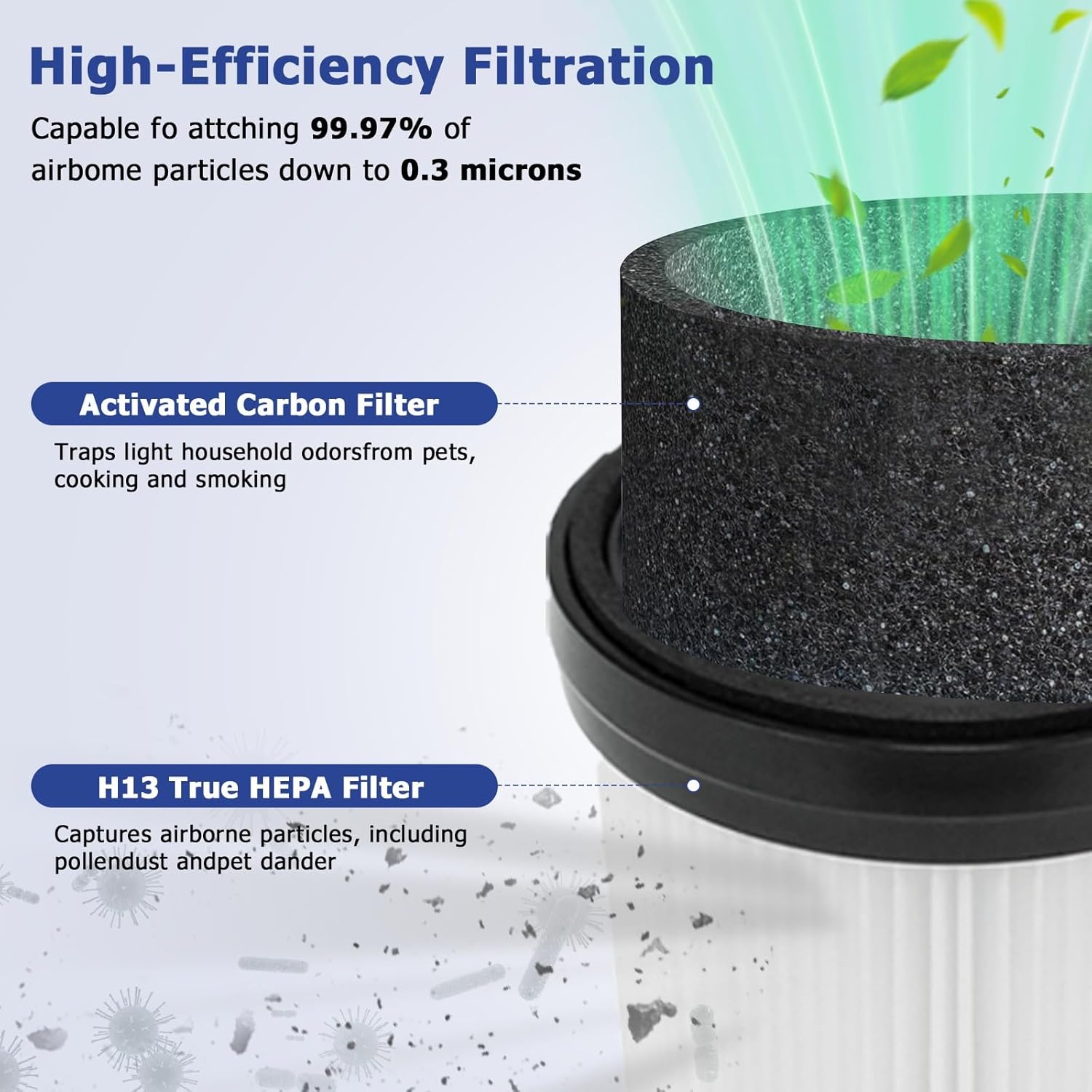 Dank der hohen Abdichtungsleistung kann dieser HEPA-Filter bis zu 99,97 % aller PM2,5-Partikel, Bakterien, Schwermetalle und organischen Stoffe sowie Pollen filtern. Dadurch wird die Abluft Ihres Staubsaugers spürbar reiner und frischer.