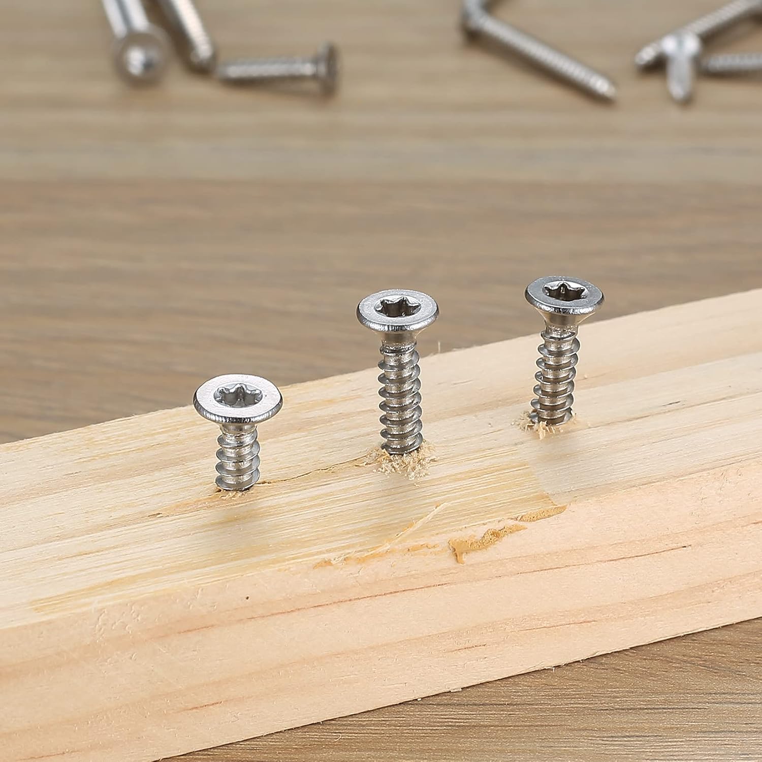 Dieses 400-teilige Schrauben-Sortiment richtet sich an Handwerker, Trockenbauer und Holzverarbeiter, die ein durchdachtes Basis-Set mit gängigen Schraubengrößen benötigen. Die Edelstahl-Senkkopfschrauben mit Torx-Antrieb und Bohrspitze eignen sich besonders für Holz- und Trockenbauprojekte, bei denen Vorbohren nicht gewünscht ist. Mit sechs verschiedenen Längen von 12mm bis 35mm und drei Durchmessern (M3, M3.5, M4) deckt das Set die meisten Standardarbeiten ab.