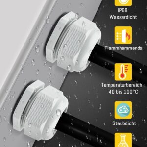 - Zertifizierte Dichte: Die Schutzklasse IP68 schützt deine elektrischen Installationen effektiv vor eindringendem Regenwasser, Staub und Fremdkörpern.