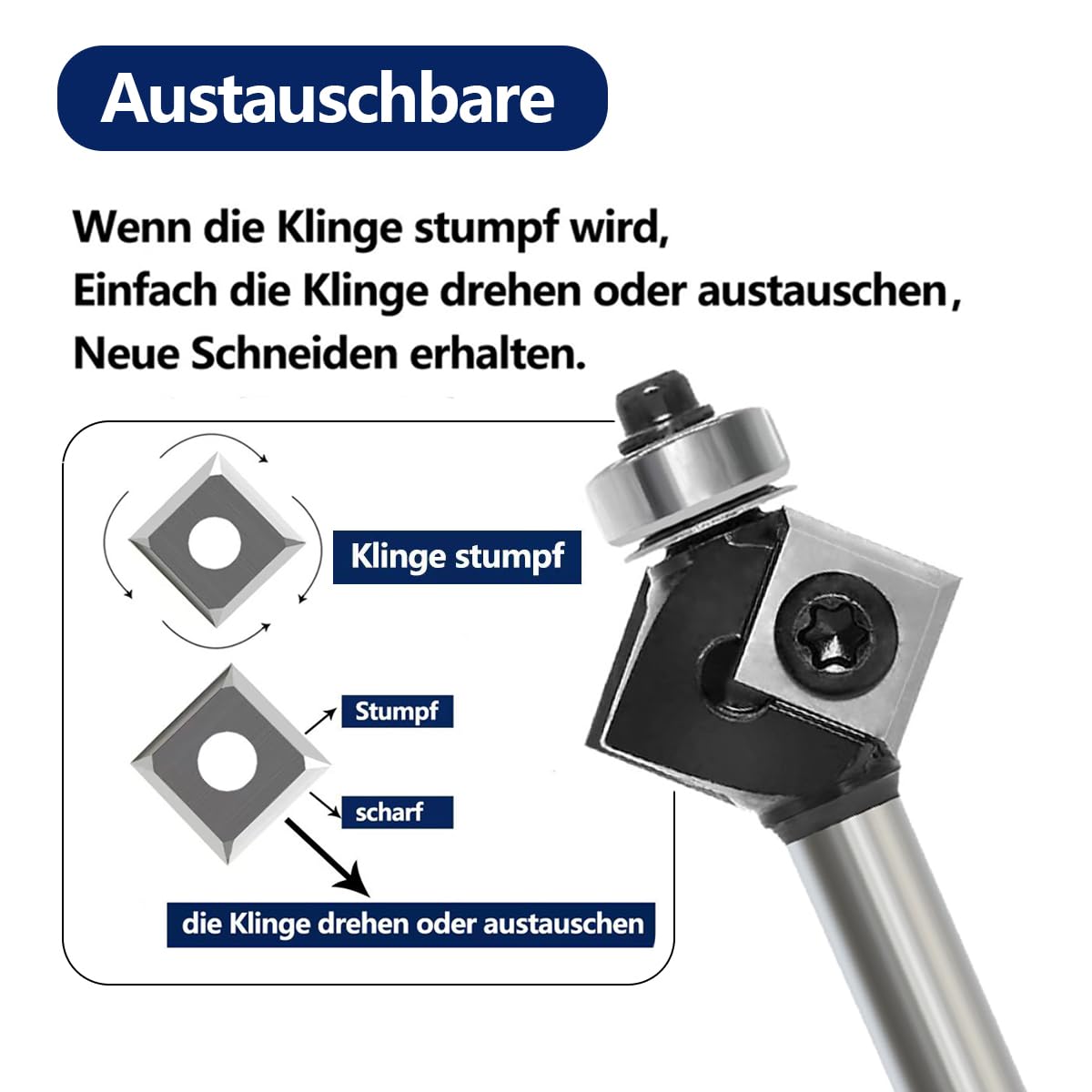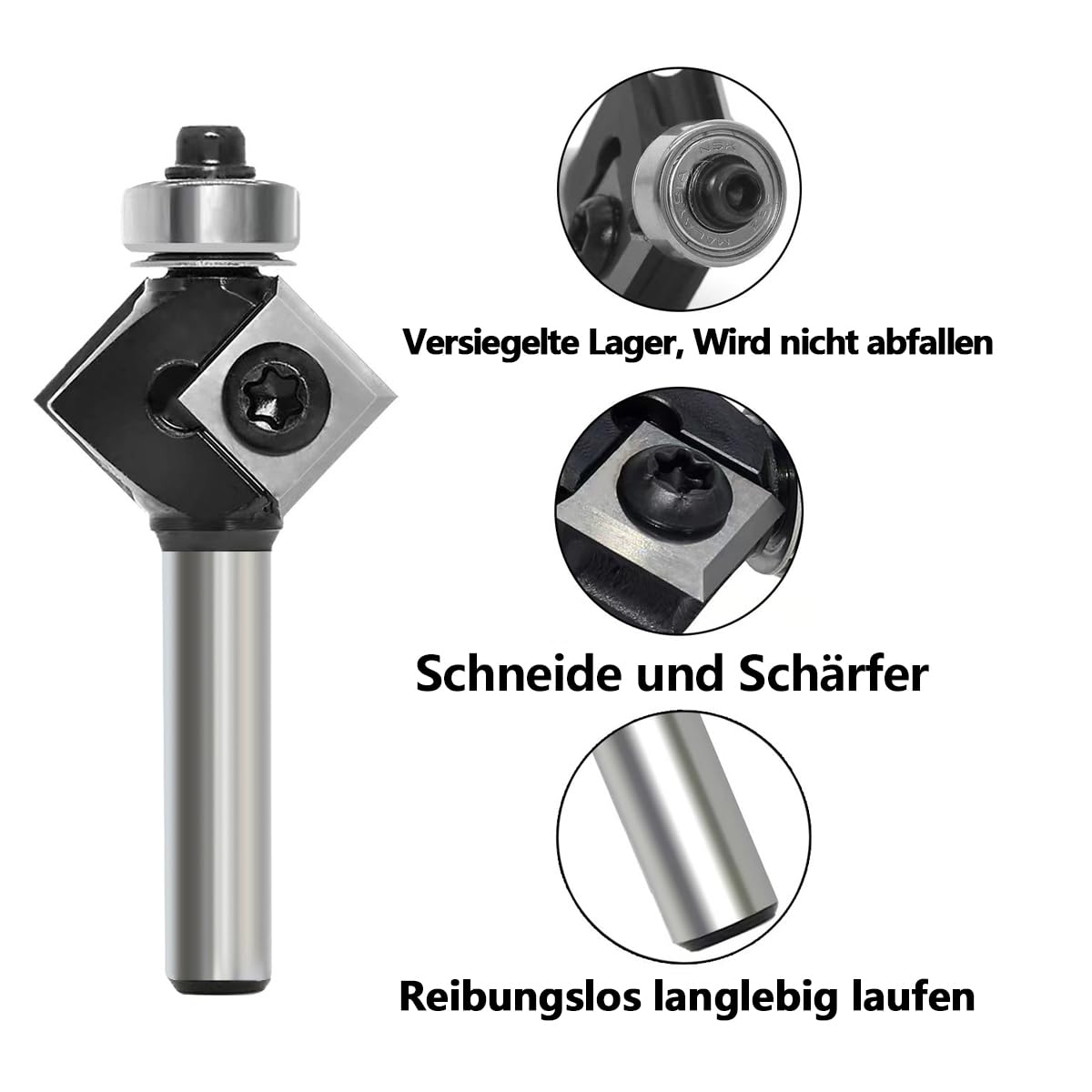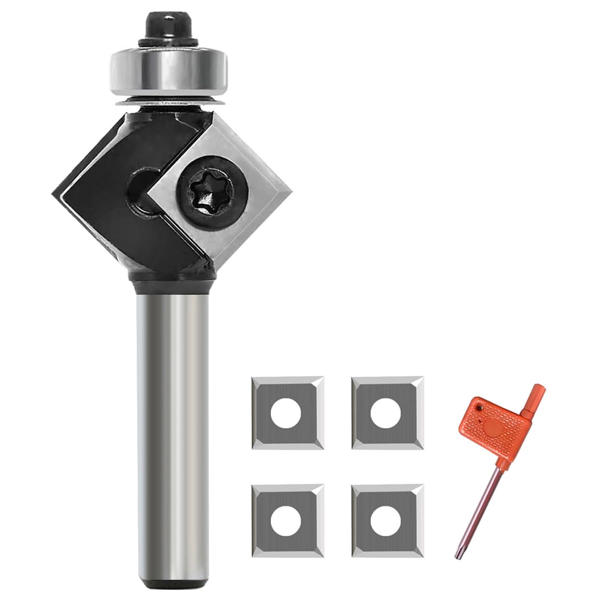 45 Grad FräSer Fasefräser 8mm Schaft, mit 4 Stück Wendeplatten, Bevel Einfassung Austauschbare-Klinge Oberfräse Fräser, für Schneiden einer 45-Grad-Fase an der Holzkante45 Grad FräSer Fasefräser 8mm Schaft, mit 4 Stück Wendeplatten, Bevel Einfassung Austauschbare-Klinge Oberfräse Fräser, für Schneiden einer 45-Grad-Fase an der Holzkante