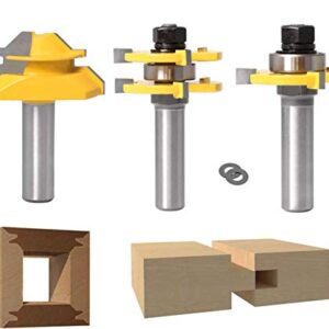 45 Grad Lock Mitre Router Bit, APLUS Holzfräser, Nutfräser + 1/2 12,7 mm Schaft Zungenschaft und Nutfräse Set 3 Zähne in T-Form Cutter aus Holz für Holzarbeiten (1/2 inch - 12,7 mm)