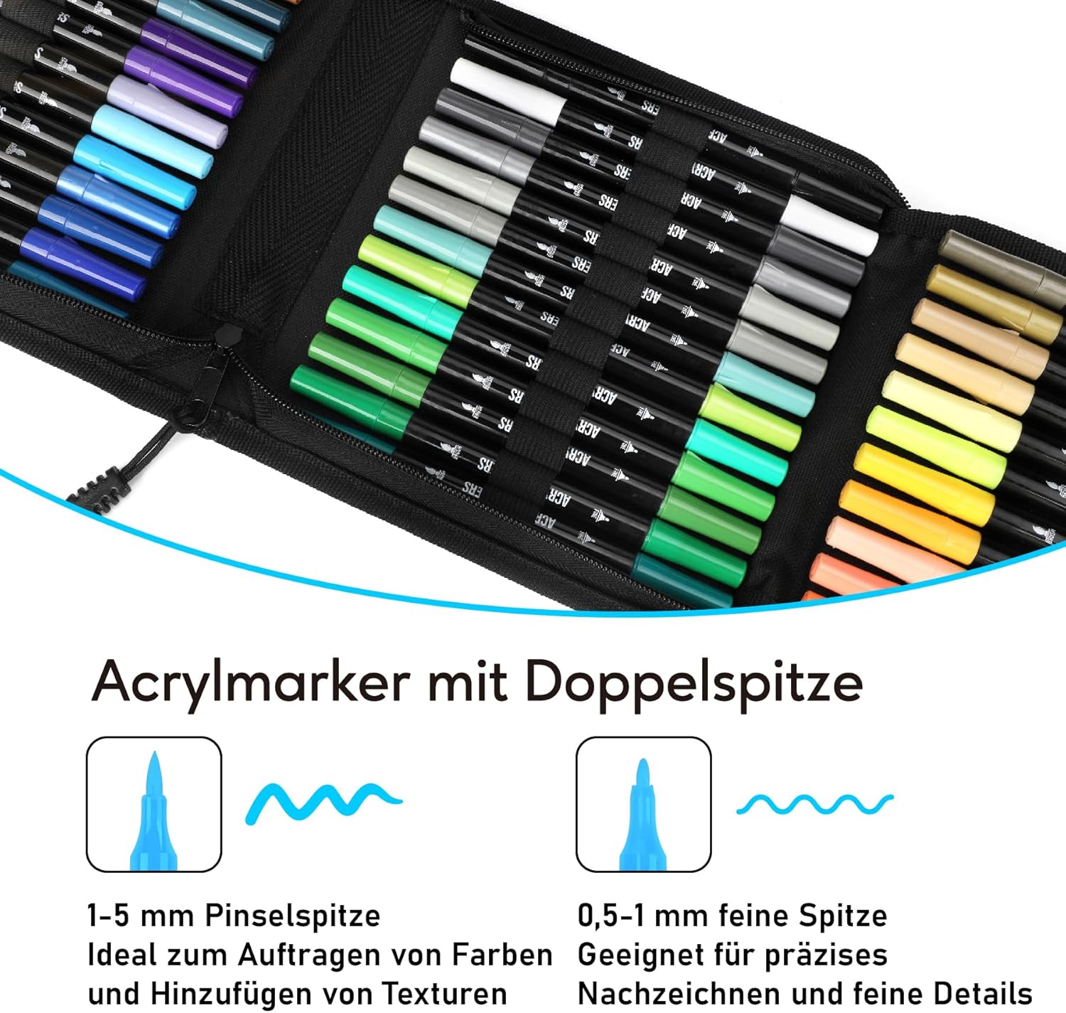 Empfohlene Nutzung für das Produkt 48 Farben Acrylstifte Set – Doppelspitzen-Design