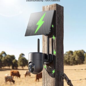 - 【Solarbetrieb】: Mit einem Solarpanel funktioniert diese 4G LTE Überwachungskamera Aussen kontinuierlich und unabhängig von Stromquellen – selbst bei Regen oder Schnee! Das mitgelieferte 3-meter lange Solarpanelkabel ermöglicht eine flexible Installation an sonnigen Orten mit langer Sonneneinstrahlung, sodass man eine stabile und ununterbrochene Energieversorgung für die Kamera Aussen mit SIM Karte sicherstellen kann