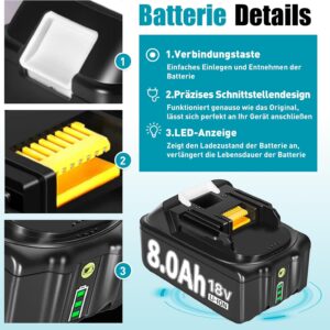 Produktbeschreibung für 4X 18V 8.0Ah Ersatzakku für Makita