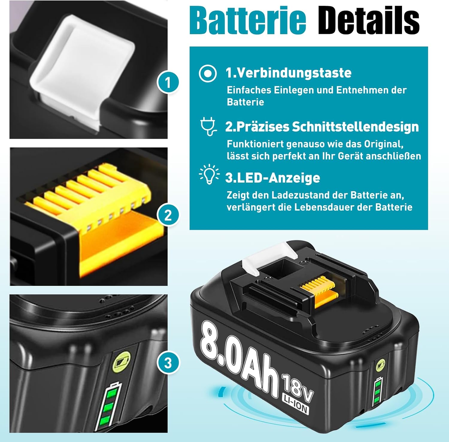 Vorteile des Produkts 4X 18V 8.0Ah Ersatzakku für Makita