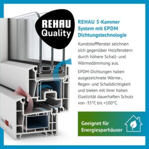 | Rahmenmaterial | Kunststoff (Rehau-Profil) |