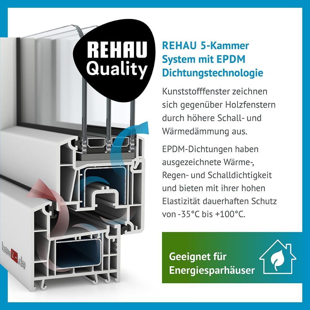 Bei dem 5 Classic Kunststoff-Fenster handelt es sich um ein präzise gefertigtes Bauelement, das auf Basis der Rehau 70 mm Systemarchitektur entwickelt wurde. Der Aufbau mit 5 Kammern bildet die physikalische Basis, um Kältebrücken zu vermeiden. In der Praxis bedeutet dies: Die Innenoberfläche des Rahmens bleibt auch bei niedrigen Außentemperaturen warm, was Kondenswasser und Schimmelbildung effektiv vorbeugt.