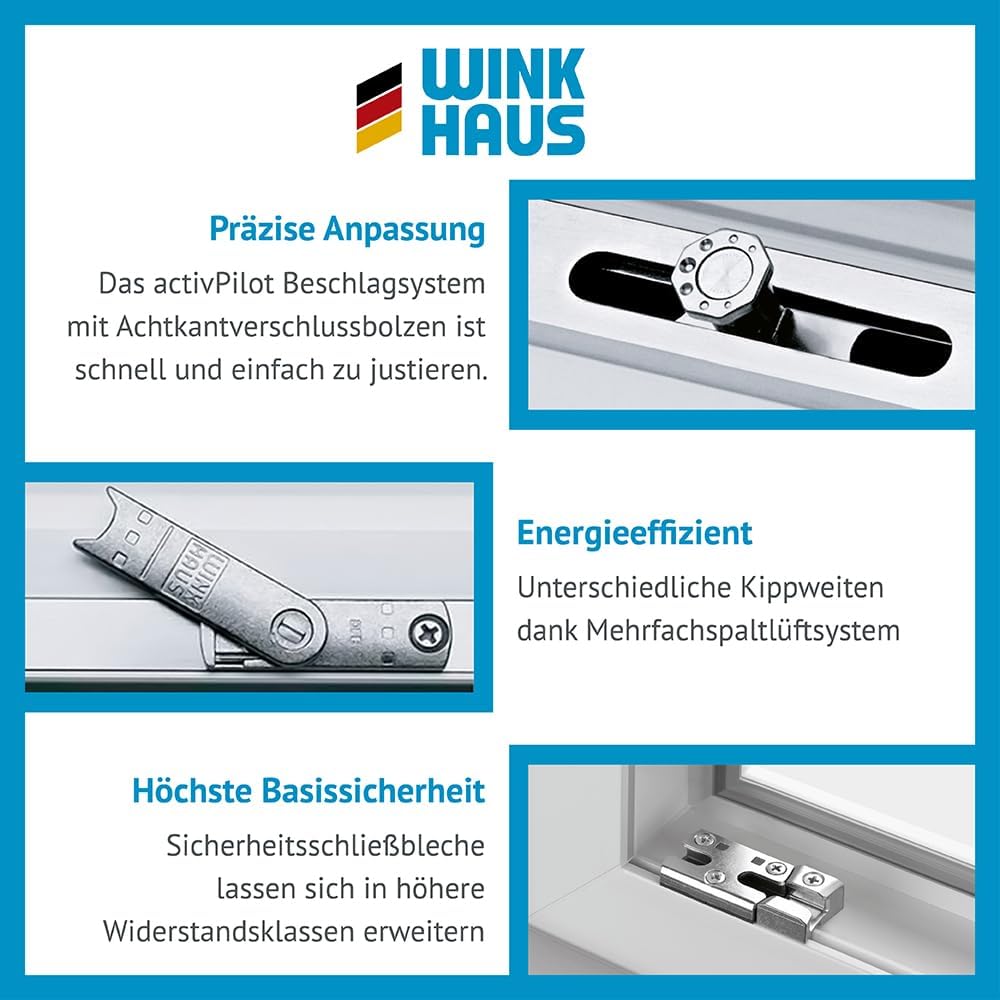 - Sicherheit durch Winkhaus: Das integrierte activPilot-Beschlagsystem bietet erhöhten Einbruchschutz und garantiert ein leichtgängiges, präzises Öffnen und Schließen über Jahre hinweg.