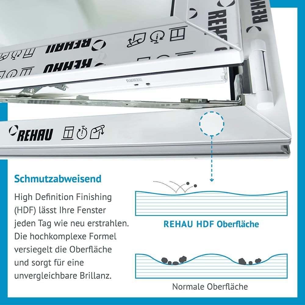 - Rehau-Profilqualität: Das 70 mm Profil kombiniert schlankes Design mit hoher Stabilität und ist dank HDF-Oberfläche besonders schmutzabweisend und leicht zu reinigen.