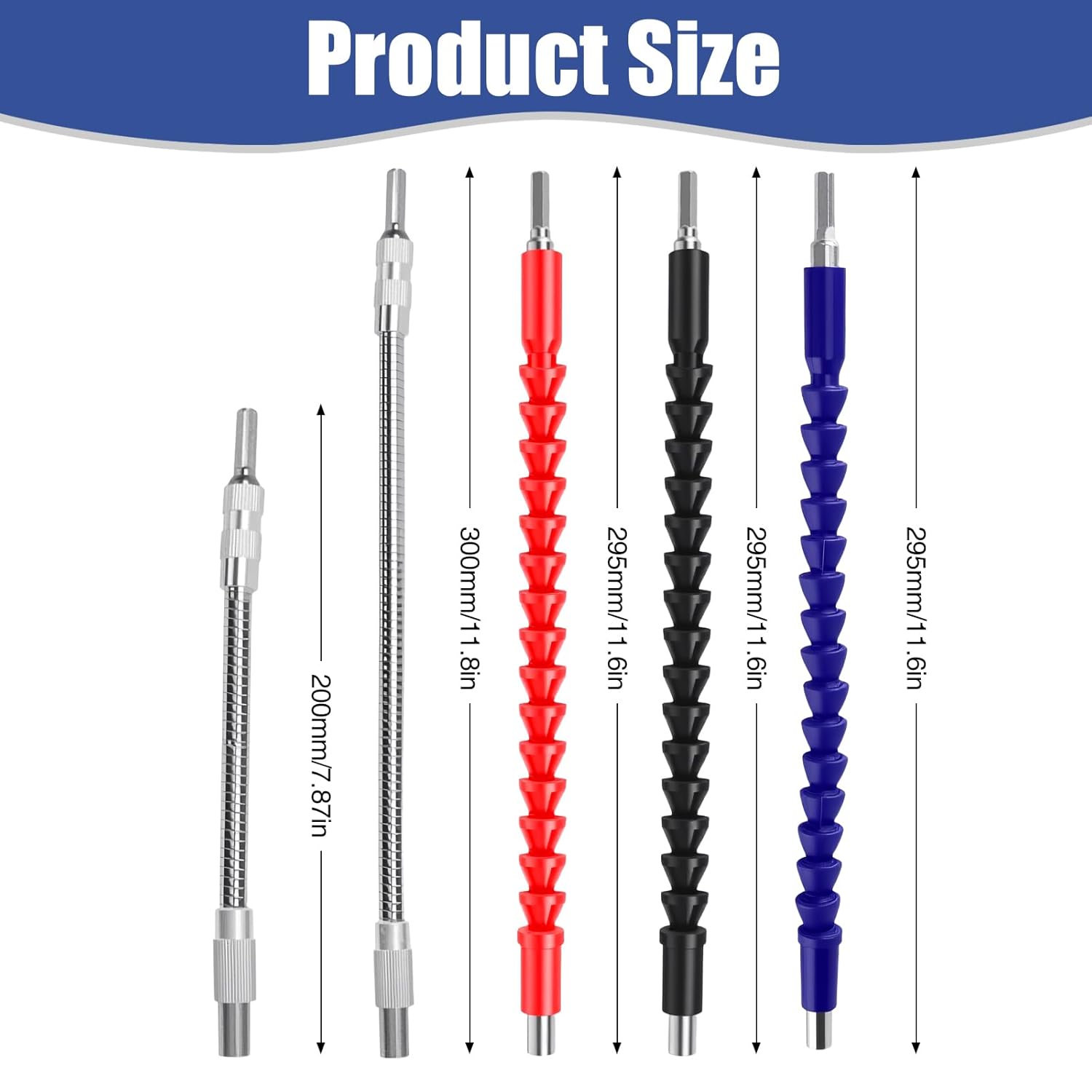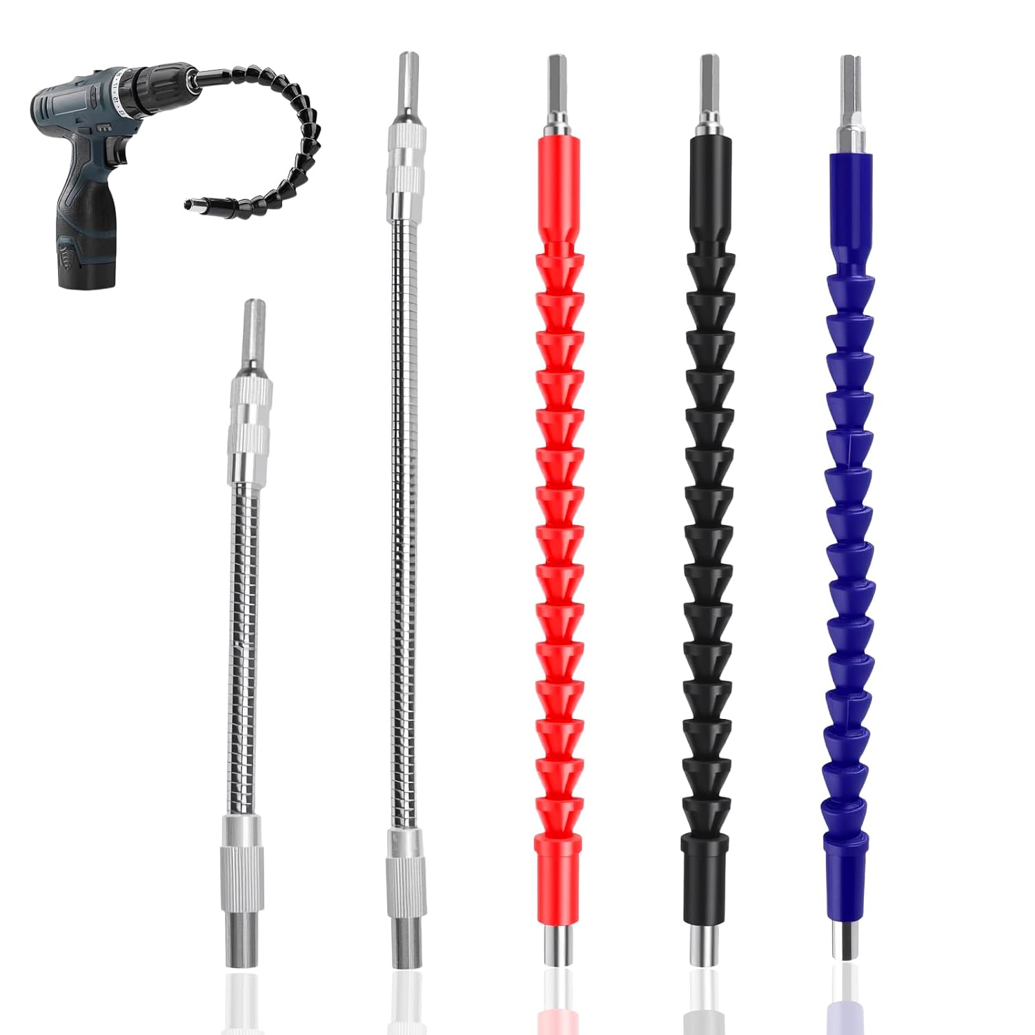 - Paket Beinhaltet: Sie erhalten fünf flexible Wellen: zwei silberne biegsame Wellen mit 4-Zoll-Hex-Shank und 300 mm bzw. 200 mm sowie drei 29,5 cm lange flexible Shaft-Bohrer in den Farben Blau, Rot und Schwarz.