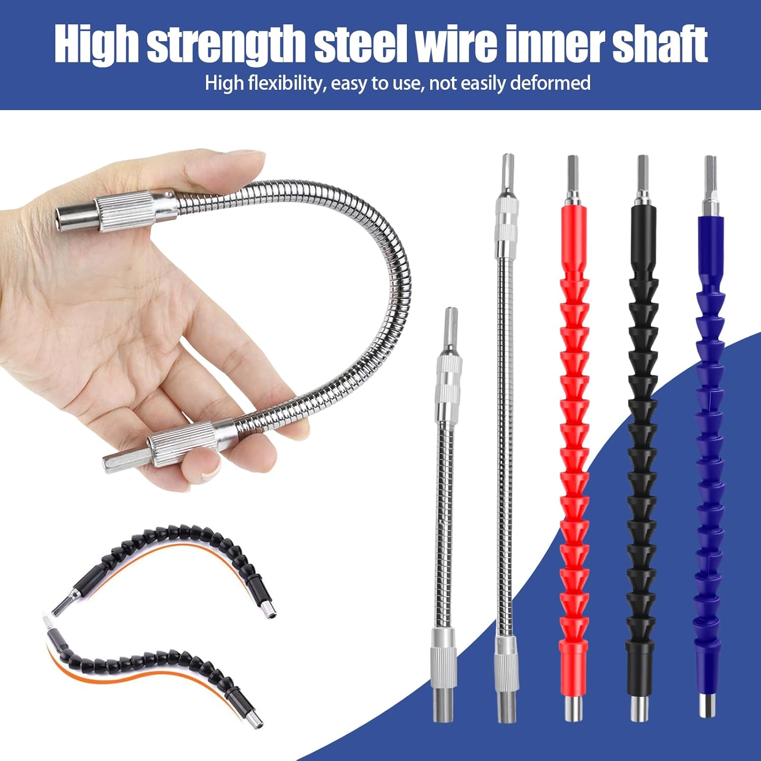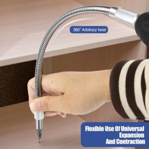 - 360°-Drehung: Die flexible Welle der Verlängerungsbits kann in jede Richtung gebogen werden, sodass in verschiedenen Winkeln gearbeitet werden kann. Dadurch gelingt das präzise Bohren und Schrauben in engen Räumen.