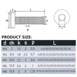 Vorteile des Produkts 50 Stück Flachkopfschrauben M4
