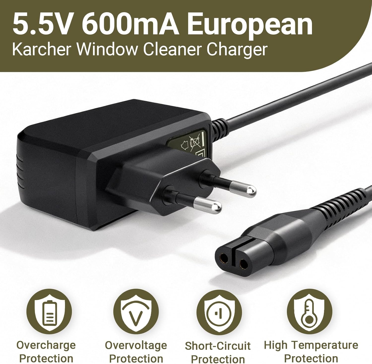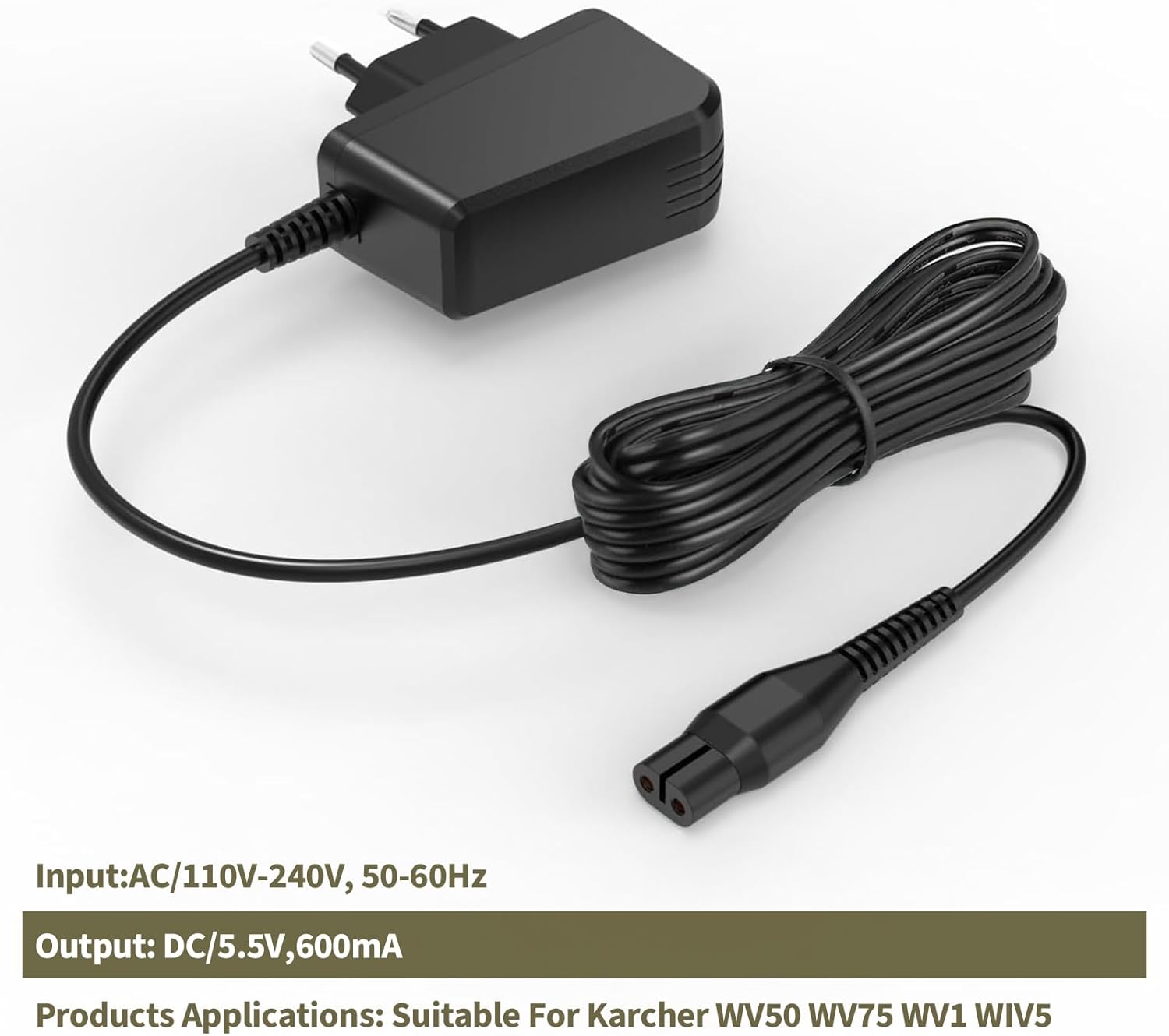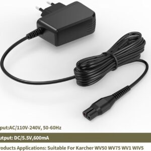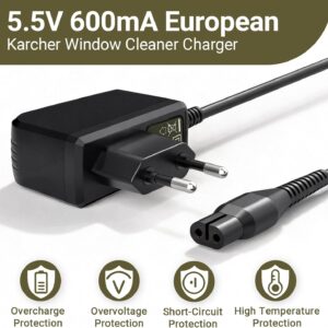 Das Ladegerät liefert eine stabile Ausgangsspannung von 5,5V bei einer Stromstärke von 600mA (0,6A). Diese präzise Abstimmung sorgt für eine sichere und zuverlässige Aufladung Ihres Fenstersaugers und stellt eine hochwertige Alternative zum Originalprodukt dar.