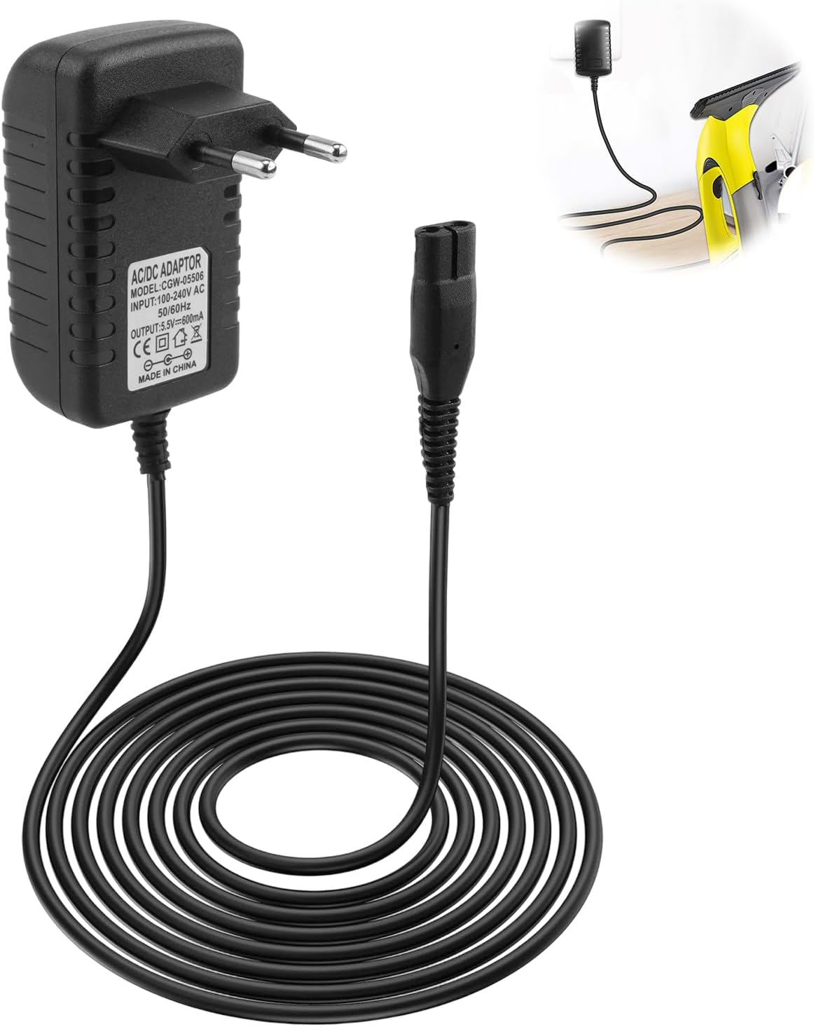 Für die meisten Kärcher Window Vac Modelle wird ein 5,5V-Ladegerät benötigt. Dieses spezielle Ersatz-Ladegerät bietet eine breite Kompatibilität und ist direkt als idealer Austausch bei Verlust oder Defekt des Originalzubehörs konzipiert.