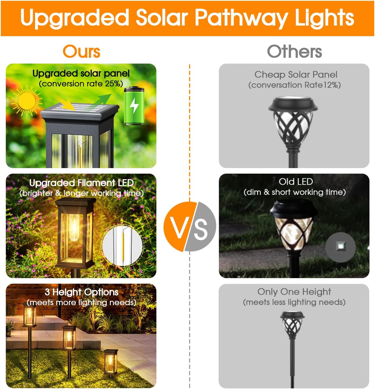 Die TuyLuxe Solarleuchten sind mit verbesserten warmweißen LED-Wolfram-Leuchtmitteln ausgestattet, die herkömmliche Solar-Gartenleuchten in ihrer Leuchtkraft übertreffen. In Kombination mit einer hochtransparenten, verstärkten Linse erzeugen sie ein besonders klares und helleres Licht für Ihren Außenbereich.
