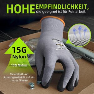 Bei der Entwicklung der 6Paar Arbeitshandschuhe herren stand die Balance zwischen Schutzwirkung und Nutzerkomfort im Fokus. Wir haben festgestellt, dass viele Arbeitshandschuhe entweder zu dick sind und das Gefühl für Werkzeuge nehmen, oder zu dünn, wodurch sie nach kurzer Zeit reißen. Diese Montagehandschuhe verwenden ein Trägermaterial aus technischem Gewebe, das wie eine zweite Haut sitzt, kombiniert mit einer griffigen Beschichtung auf der Handinnenseite.