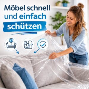 Transparente Abdeckfolie wird hauptsächlich beim Malen und Renovieren eingesetzt, um Möbel, Böden und andere Oberflächen vor Farbe und Schmutz zu schützen. Der Vorteil transparenter Folien ist, dass man darunter liegende Gegenstände noch erkennen kann. Sie eignen sich auch für Bauarbeiten, Lagerung oder als Staubschutz.