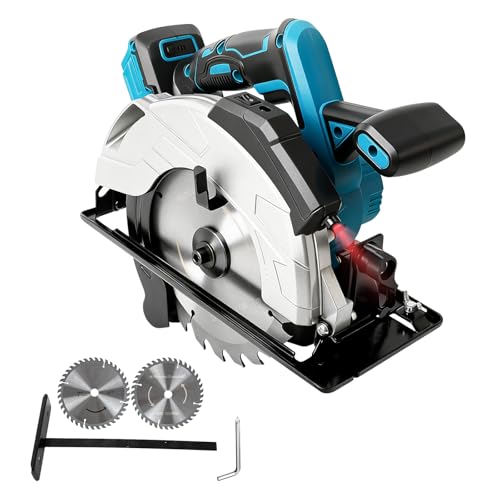 7-Zoll Akku Kreissäge kompatibel mit Makita 18-V-Akku (ohne Akku), bürstenlose elektrische Kreissäge mit 5000 U/min und roter LED-Lichtführung, 0-45° Gehrungsschnitt, 24T und 40T Sägeblätter
