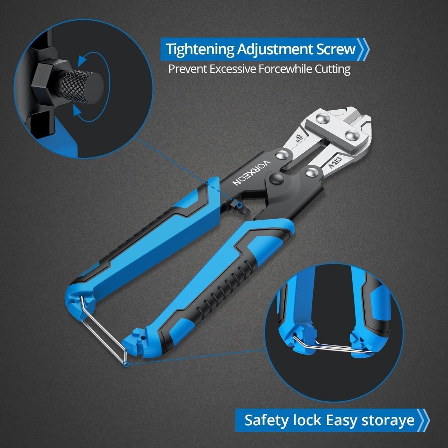 8"/218mm Bolzenschneider Klein (bis Ø2,3mm) | Chrom-Vanadium Drahtschneider Mit Rutschfesten Griffen & Schloss | Schneidet Ketten, Stahl-, Eisen-, Kupferdraht
