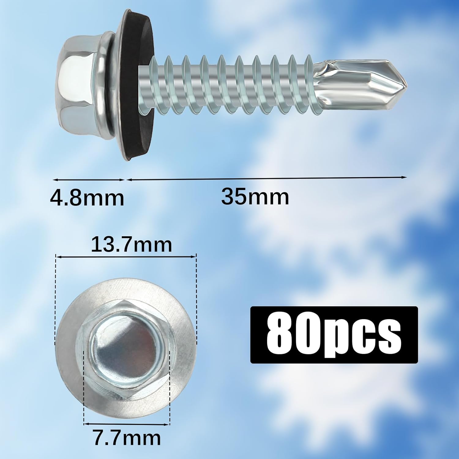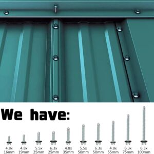 Die 4,8 x 35 mm Schrauben mit Dichtung sind speziell für die Befestigung von Trapezblechen geeignet. Dank der Kombination aus Schraubenkopf und Unterlegscheibe sorgen sie für eine sichere und wetterfeste Verbindung auf dem Untergrund.