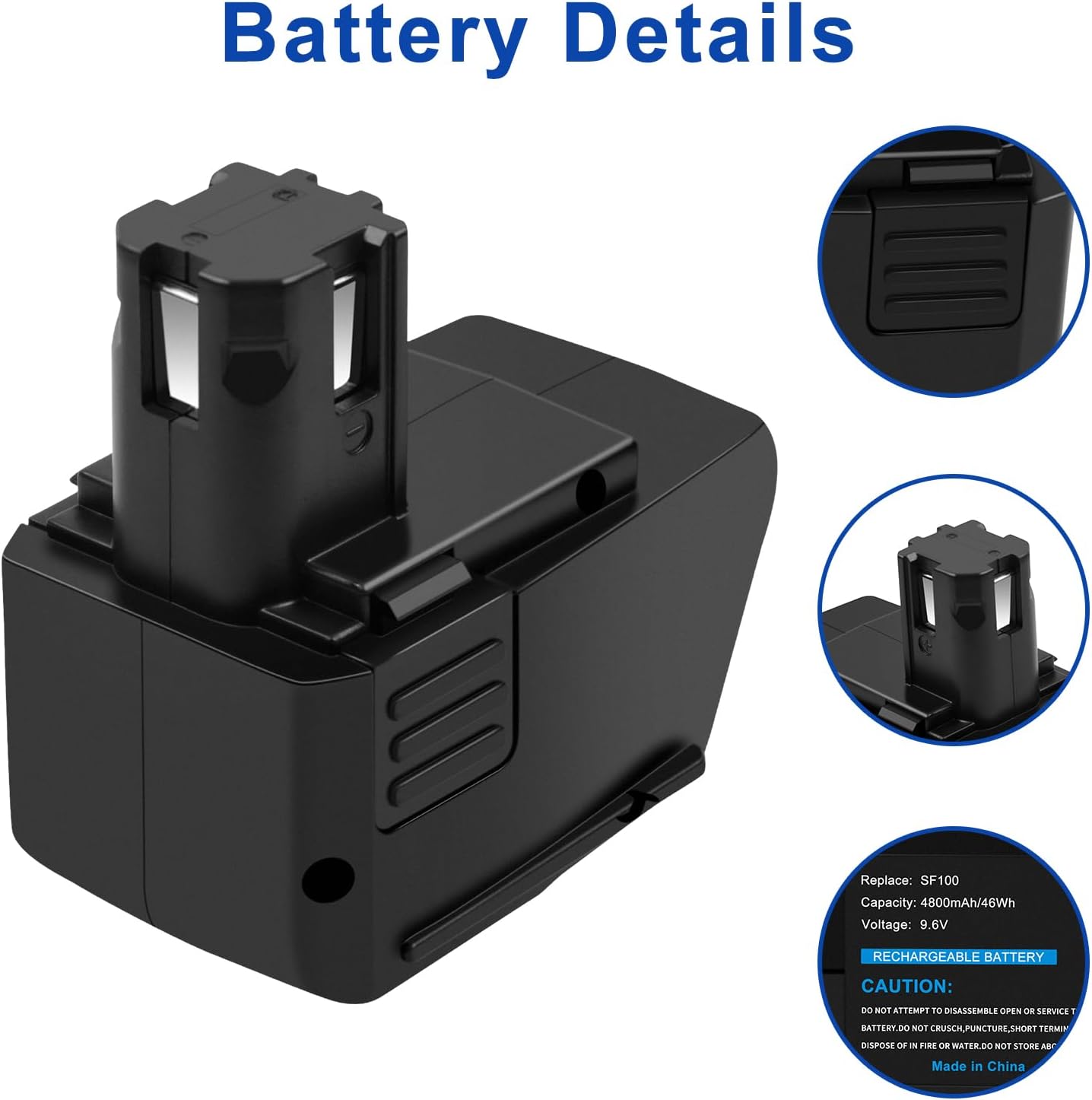 9,6V 4800mAh NI-MH Ersatzakku für Hilti SB10, SF 100, SF 100 A, SFB 105, BD2000, SBP10, SPB105, 265605, 315078, 334584, 00315078, 00334584 9,6V 4800mAh NI-MH Ersatzakku für Hilti SB10, SF 100, SF 100 A, SFB 105, BD2000, SBP10, SPB105, 265605, 315078, 334584, 00315078, 00334584