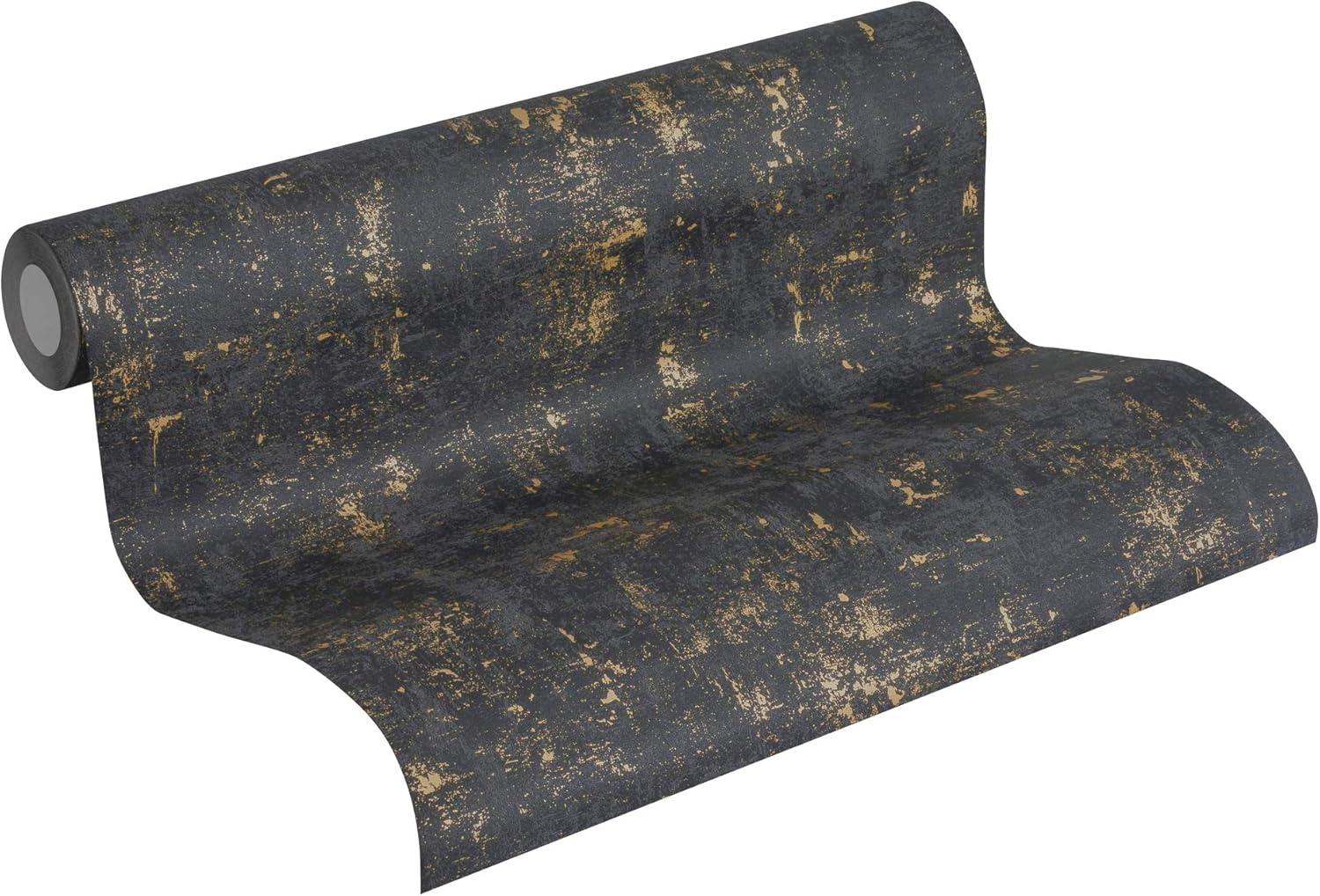Die A.S. Création Vliestapete Used Look in der Kombination schwarz-gold setzt klare optische Akzente. Die industrielle Optik verleiht dem Raum Tiefe und Charakter, ohne dass aufwendige Putztechniken angewendet werden müssen. Die Vliesträger-Konstruktion sorgt dafür, dass die Tapete bei der Verarbeitung nicht aufweicht, was Anfängern und Profis gleichermaßen zugutekommt.