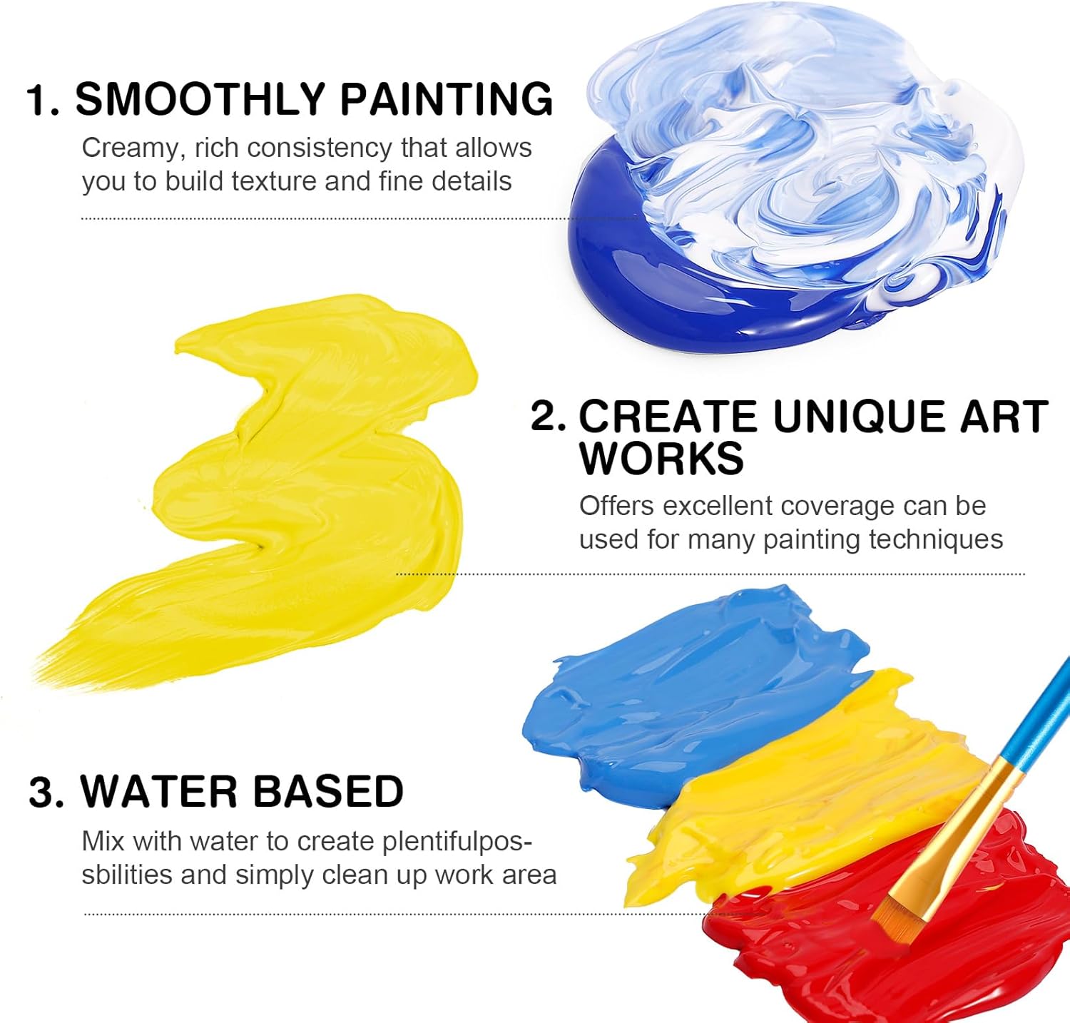 Vorteile des Produkts Acrylfarben-Set, 14 x 20 ml + 3 Pinsel