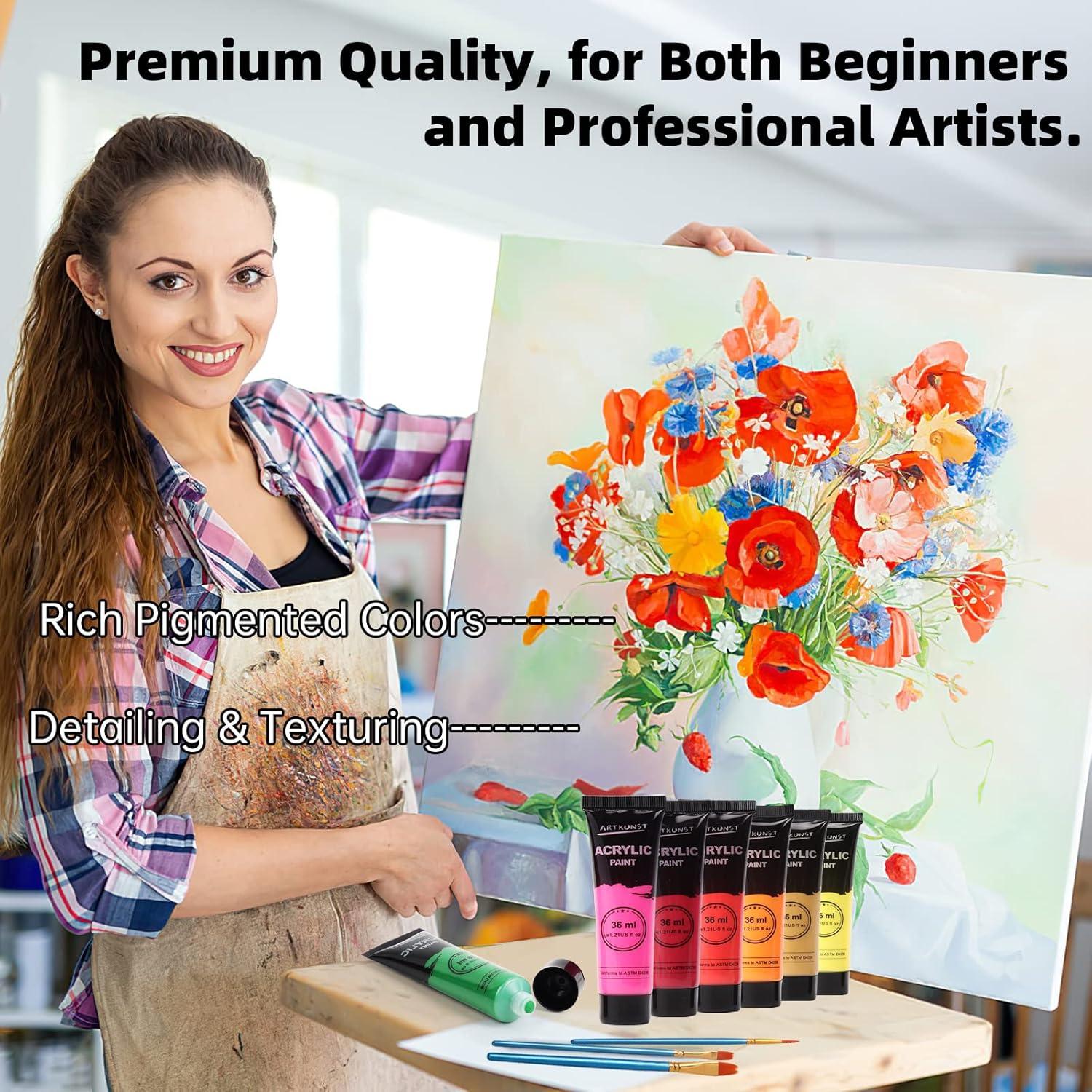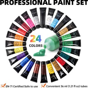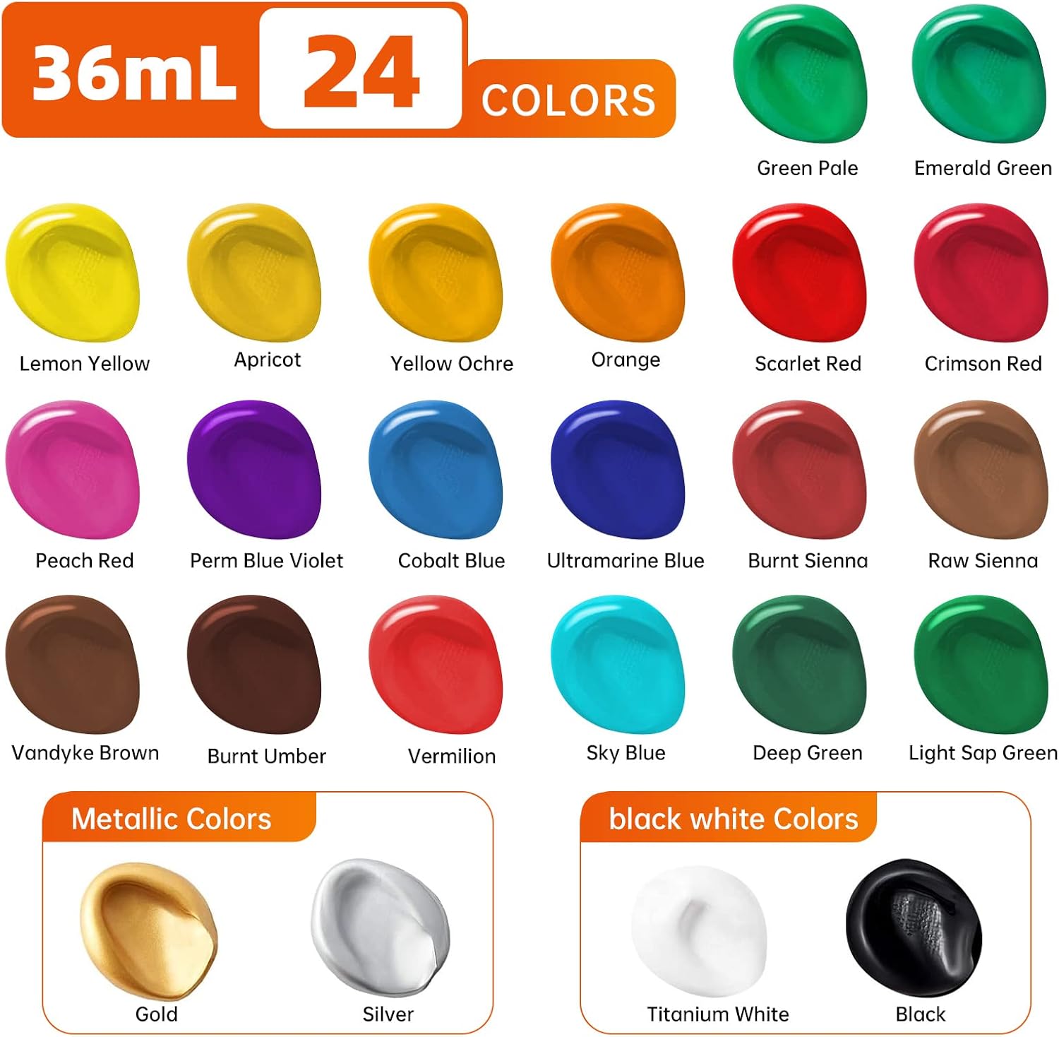- Vollständiges Set: Mit 24 Tuben à 36 ml, 10 Pinseln, einer Palette und einer Leinwand ist das Set direkt einsatzbereit und spart die mühsame Einzelbeschaffung.