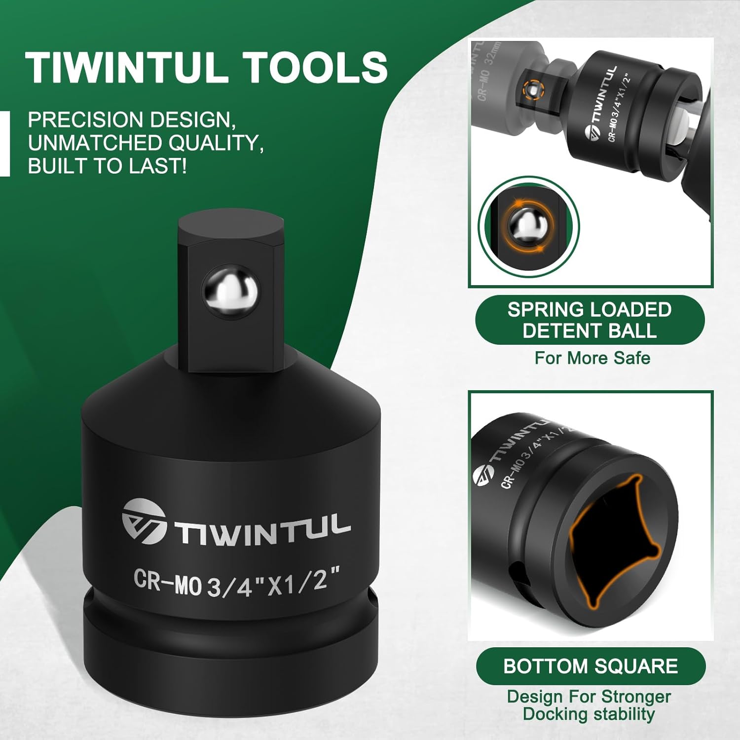 Dieser 3/4″ auf 1/2″ Adapter ist das Bindeglied für Mechaniker und industrielle Instandsetzer, die ihre schweren Schlagschrauber mit handelsüblichen 1/2″-Nüssen effizient nutzen wollen. Er bietet die notwendige Stabilität, um hohe Drehmomente bei der Arbeit an Nutzfahrzeugen, Landmaschinen oder im metallverarbeitenden Gewerbe ohne Materialbruch sicher zu übertragen.