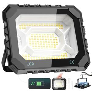 Adewalk 80W LED Baustrahler Akku Solar Arbeitsleuchte Tragbare, 10000LM 8000mAh Akku Arbeitsleuchte USB-Wiederaufladbar, 5 Lichtmodi, Campinglampe Tragbar im Freien für Notfälle, Baustelle, Camping