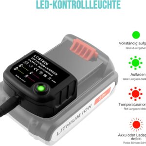 Das Ladegerät ist speziell für Black & Decker 14,4 V, 18 V und 20 V Lithium-Ionen-Akkus konzipiert, darunter Modelle wie BL2018, LBXR20 und LB2X4020. Bitte beachten Sie jedoch, dass das Gerät ausdrücklich nicht für NiCad- oder NiMH-Akkus geeignet ist. Mit einer Bewertung von 4,6 Sternen überzeugt es Nutzer durch seine zuverlässige Funktionalität bei kompatiblen Lithium-Akkus.