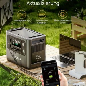 - Maximale Unabhängigkeit: Mit 2400W Ausgangsleistung und 4800W Peak betreibst du selbst schwere Maschinen wie Kappsägen oder Kompressoren ohne Einschränkungen.
