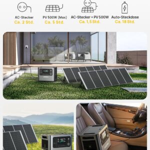 - Effiziente Energiegewinnung: Die 400W Solarmodule bieten eine Umwandlungseffizienz von bis zu 23 %, was dir auch unter weniger idealen Lichtverhältnissen eine schnelle Nachladung ermöglicht.