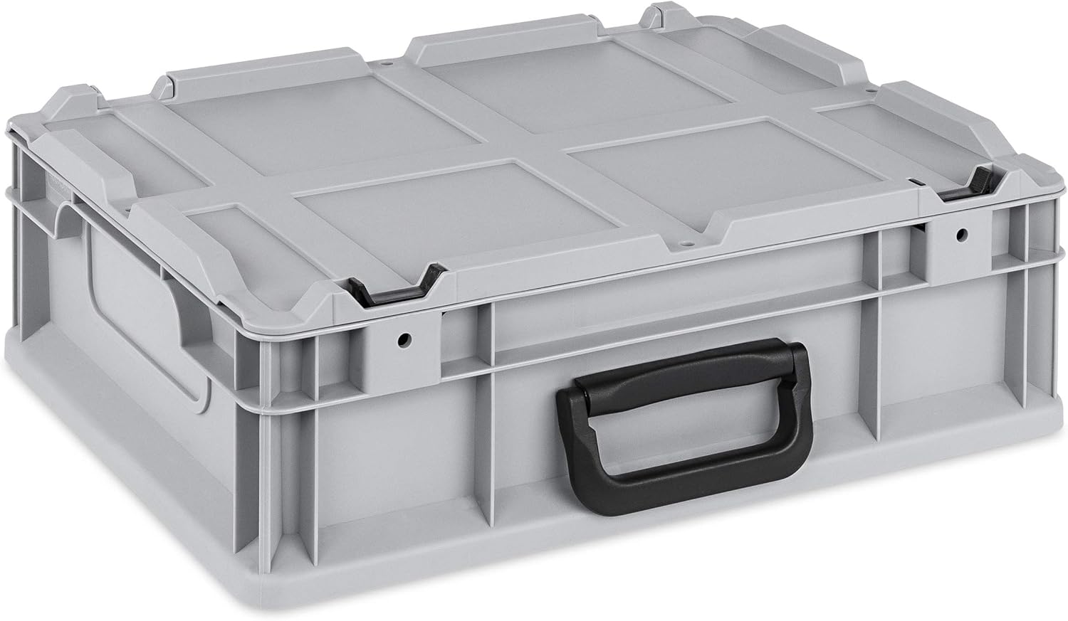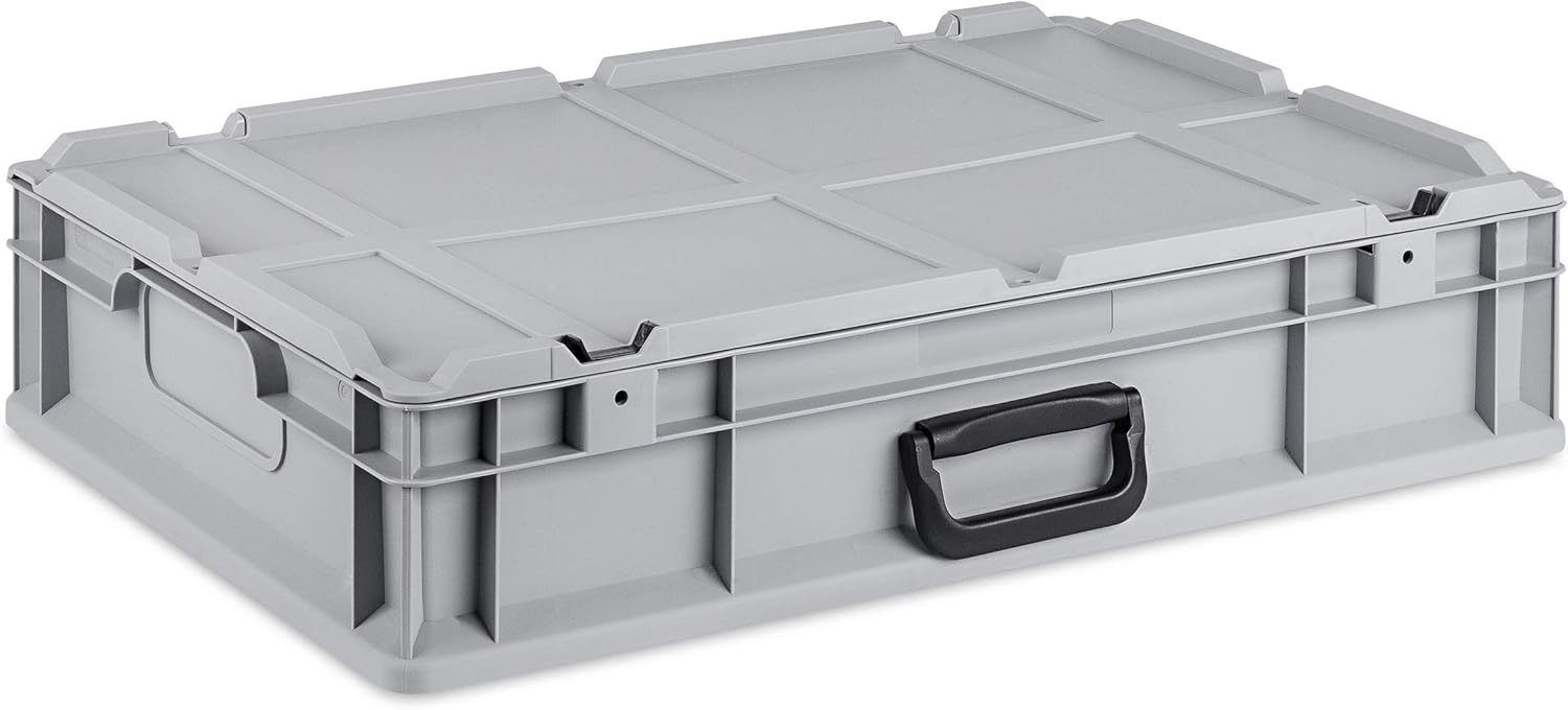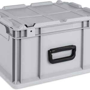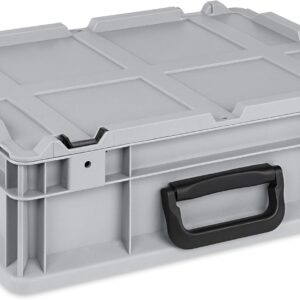 Die Eurobox überzeugt durch ihre robuste Bauweise und ihre hohe Funktionalität als stapelbarer Transportkoffer. Ein besonderes Highlight ist der komfortable Koffergriff sowie der praktische Scharnier-Deckel, der dank Schiebeschnappverschlüssen komplett ohne Werkzeug montiert werden kann.