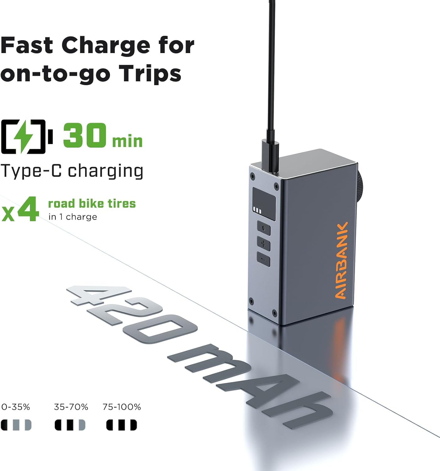 AIRBANK Mini-Fahrradpumpe mit Manometer, Pocket 2 PRO, tragbare elektrische Fahrradpumpe 120 PSI, wiederaufladbare Luftpumpe für Rennrad, Mountainbike, Sportbälle für Schrader- und Presta-VentilAIRBANK Mini-Fahrradpumpe mit Manometer, Pocket 2 PRO, tragbare elektrische Fahrradpumpe 120 PSI, wiederaufladbare Luftpumpe für Rennrad, Mountainbike, Sportbälle für Schrader- und Presta-Ventil