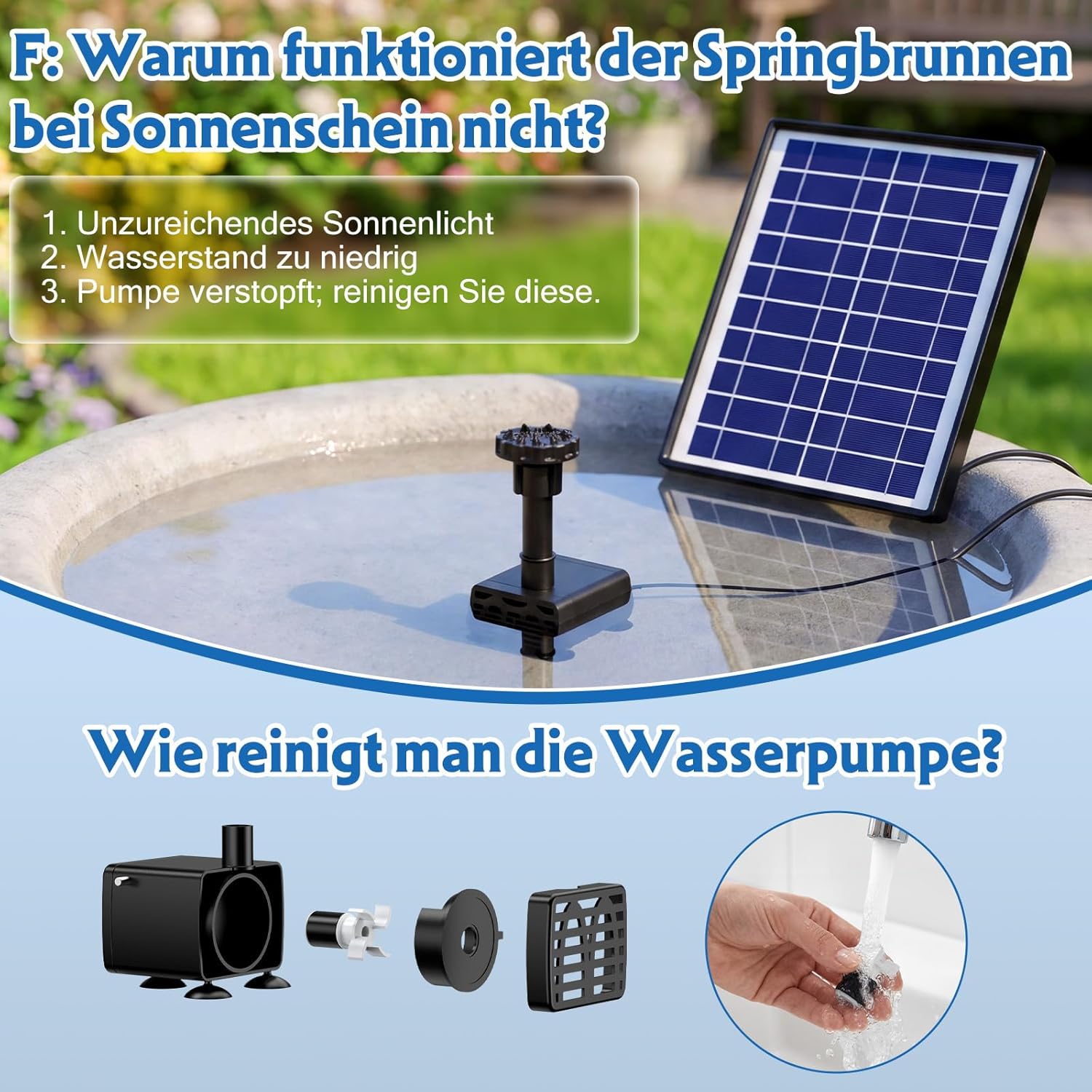 Wie reinigt man eine Solar Springbrunnen Pumpe?
