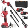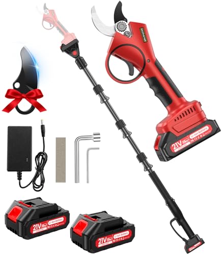 Akku Astschere Teleskop,40MM 2-IN-1 Akku Gartenschere mit Teleskopstiel mit 21V 2X 2000 mAh Akkus, 2.5m Reichweite, 6-10 Stunden, 800W Astschere Akku mit Bürstenlosem Motor für Gartenarbeit, Obstbäume