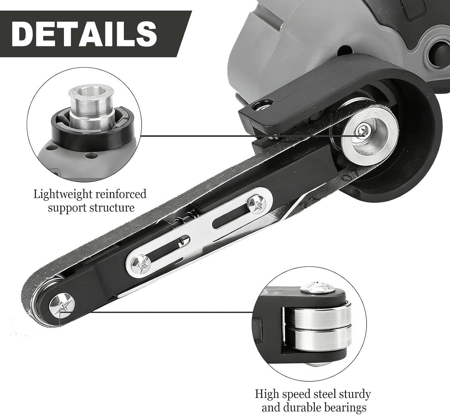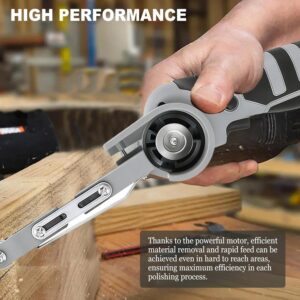 - Kabelloses Design: Der Mini Bandschleifer wird von einem bürstenbehafteten Motor angetrieben, der für überragende Leistung und eine lange Lebensdauer des Geräts sorgt. Dank der einfachen Einhandbedienung lassen sich Ecken, Schweißnähte und Bohrlöcher präzise schleifen. Das Gerät eignet sich perfekt für anspruchsvolle Heimwerkerprojekte sowie für Schleif- und Gravierarbeiten auf engstem Raum.