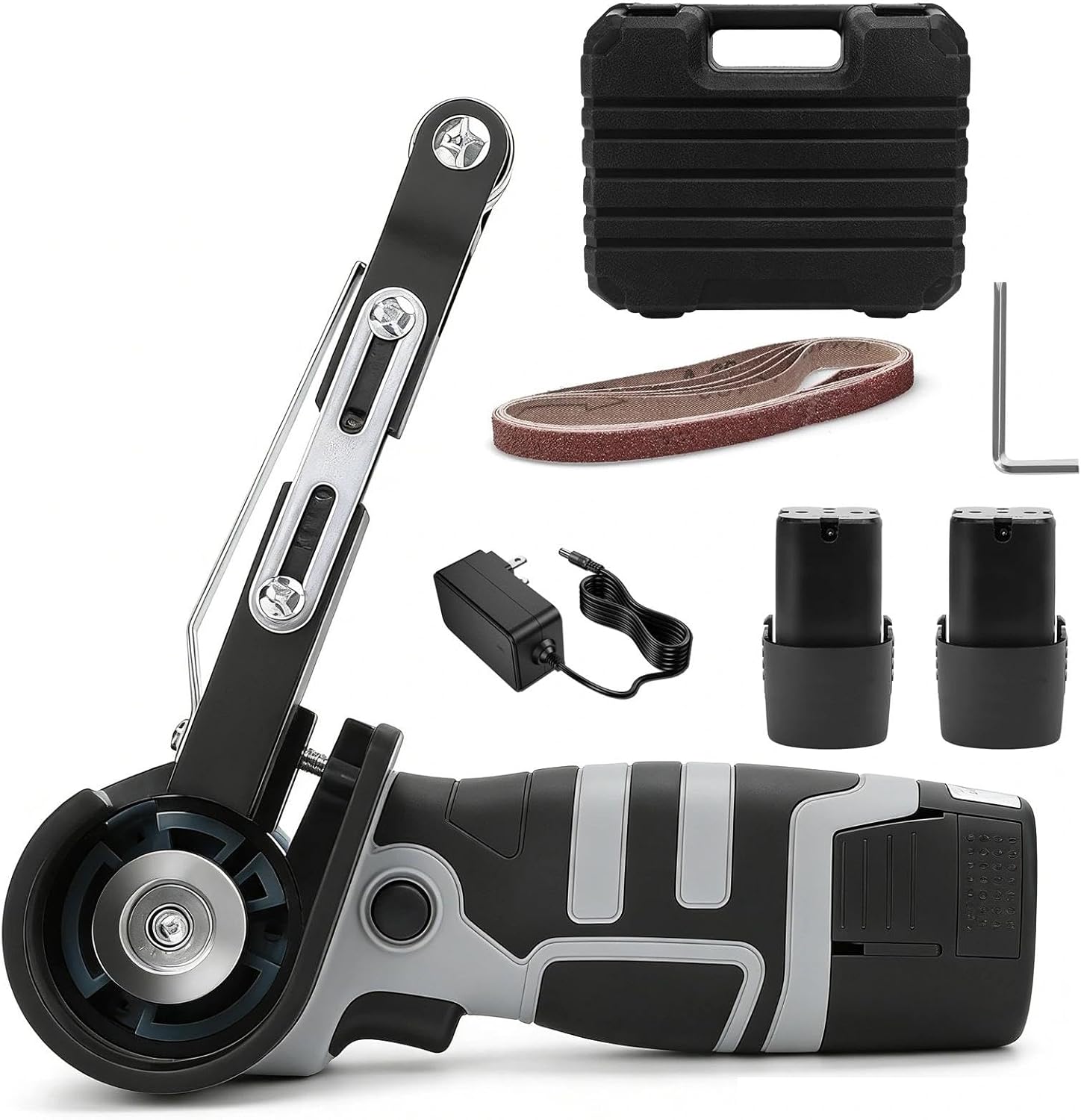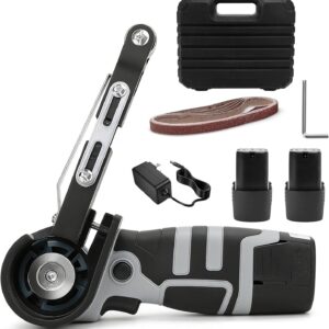 Merkmale:– Der Akku Bandschleifer verfügt über 6 einstellbare Geschwindigkeitsstufen und erreicht eine Drehzahl von bis zu 2800 U/min. Der schmale Schleifarm lässt sich um 180° verstellen, sodass Sie selbst in tiefen Spalten und schwer zugänglichen Bereichen arbeiten können, ideal für eine Vielzahl unterschiedlicher Anwendungen. Im Lieferumfang enthalten sind zwei 1300-mAh-Akkus sowie ein Ladegerät, die für eine langanhaltende Stromversorgung sorgen.– Der Mini Bandschleifer wird von einem bürs