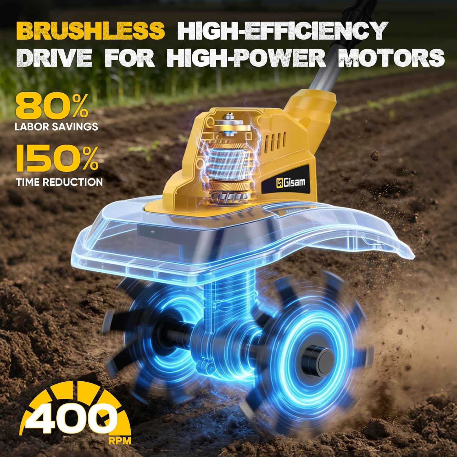 • LEISTUNGSSTARKER BÜRSTENLOSER MOTOR Ausgestattet mit einem leistungsstarken bürstenlosen Motor erreicht diese Gartenfräse Akku bis zu 400 U/min. Bis zu 80 % höhere Effizienz als herkömmliche Motoren, ideal für Bodenfräse, Motorhacke und Gartenhacke – durchbricht mühelos harten Boden, optimiert die Belüftung und beschleunigt alle Gartenarbeiten deutlich.