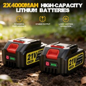 • DOPPELTE 21V 4,0AH AKKUS FÜR LANGE LAUFZEIT Zwei Hochleistungs-Akkus ermöglichen bis zu 60 Minuten Dauerbetrieb der Bodenfräse. Überlast- und Überhitzungsschutz sowie LED-Ladungsanzeige sorgen für sicheren und kontinuierlichen Einsatz. Unterbrechungsfreie Leistung für Ihre Motorhacke und effiziente Gartenarbeiten.