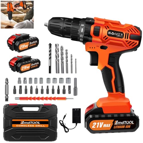 3 Rezensionen für Akku-Bohrmaschine 21V Akkuschrauber Set mit 1.5 Ah Akku, Akku Bohrschrauber Set 25+1 Drehmomentstufen, 45Nm Drehmoment, 2-Gang, LED-Licht, Schlagbohrschrauber mit 26tlg Zubehör für Haus DIY Projekte