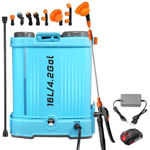 Akku Drucksprüher 16 Liter,100 PSI Elektrischer Pflanzensprüher Kompatibel mit Makita 18V Batterien,Einstellbar Gartenspritze mit 7 Nebeldüsen,Ladegerät,Teleskopstab,Verstellbarem Schultergurt