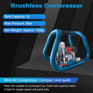 Akku Kompressor Druckluftkompressor für Makita 18V Akku, Tragbarer Luftkompressor 8bar Arbeitsdruck, 3L Gasflaschenkapazität, Schnell aufblasen für pneumatischen WerkzeugenAkku Kompressor Druckluftkompressor für Makita 18V Akku, Tragbarer Luftkompressor 8bar Arbeitsdruck, 3L Gasflaschenkapazität, Schnell aufblasen für pneumatischen Werkzeugen