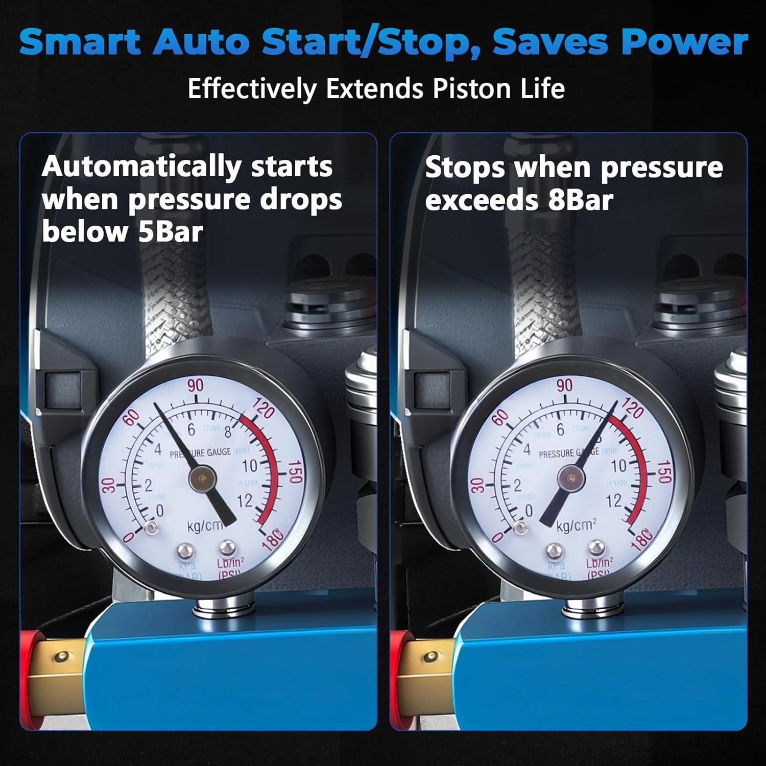 • Automatischer Start/Stopp bei 5 bar–8 bar: Intelligente Energieeinsparung.