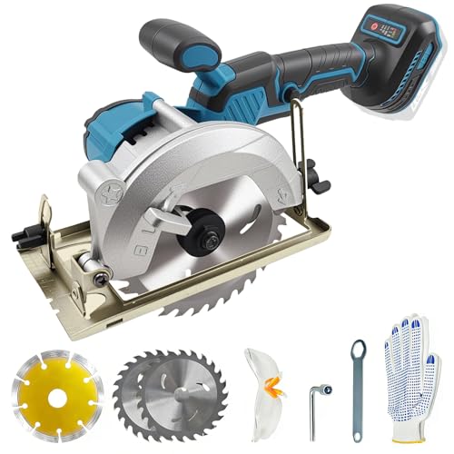 Akku Mini Kreissäge für Makita 18V, Bürstenlose Handkreissäge mit 3 Sägeblättern,Schutzbrille,Handschuhen und 2 Schraubenschlüsseln, 0-45° Gehrungsschnitt für Fliesen, Holz und Kunststoff (ohne Akku)
