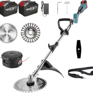 • 【Kombination von 4 Klingentypen】 Dieser 4-in-1 Rasentrimmer mit Akku vier verschiedenen Messertypen geliefert, damit Sie Ihren Garten besser mähen können. Metallklingen aus rostfreiem Stahl zum Schneiden von Unkraut und kleinen Sträuchern, und die Kreissägeblätter für dickere Sträucher und Äste, und die Fadenspule für junges Gras. Unkrautbürste zum Reinigen von Moos und kleinen Ritzen Die Klingen lassen sich leicht auswechseln, um Ihren verschiedenen Schnittanforderungen gerecht zu werden.