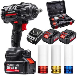 Akku Schlagschrauber 1/2 Zoll mit 2 Akkus 4.0Ah – Bürstenloser Motor – 3 Stufen + RSS – Komplett-Set mit farbcodierten Nüssen & Koffer – Perfekt für Auto & Reifenwechsel